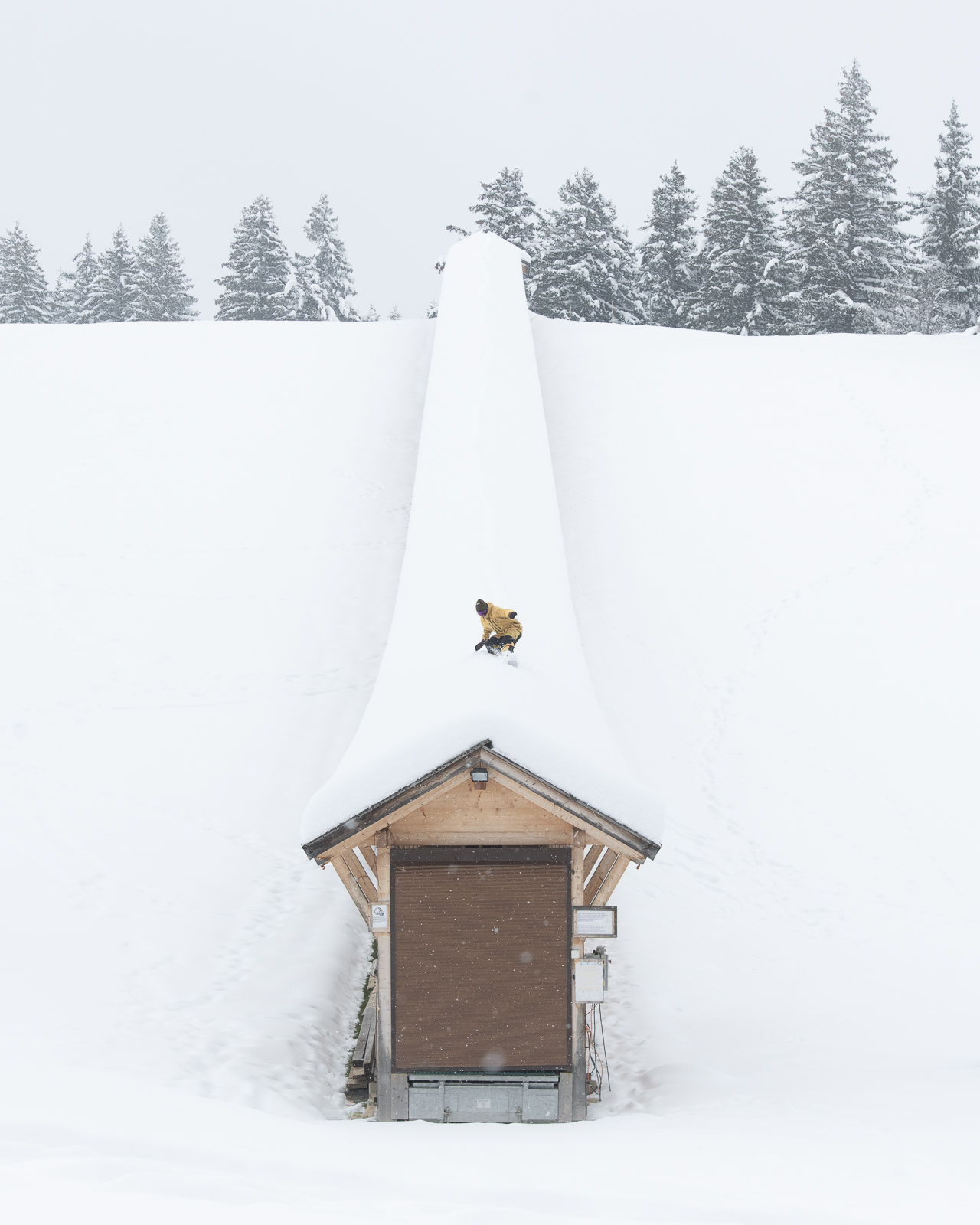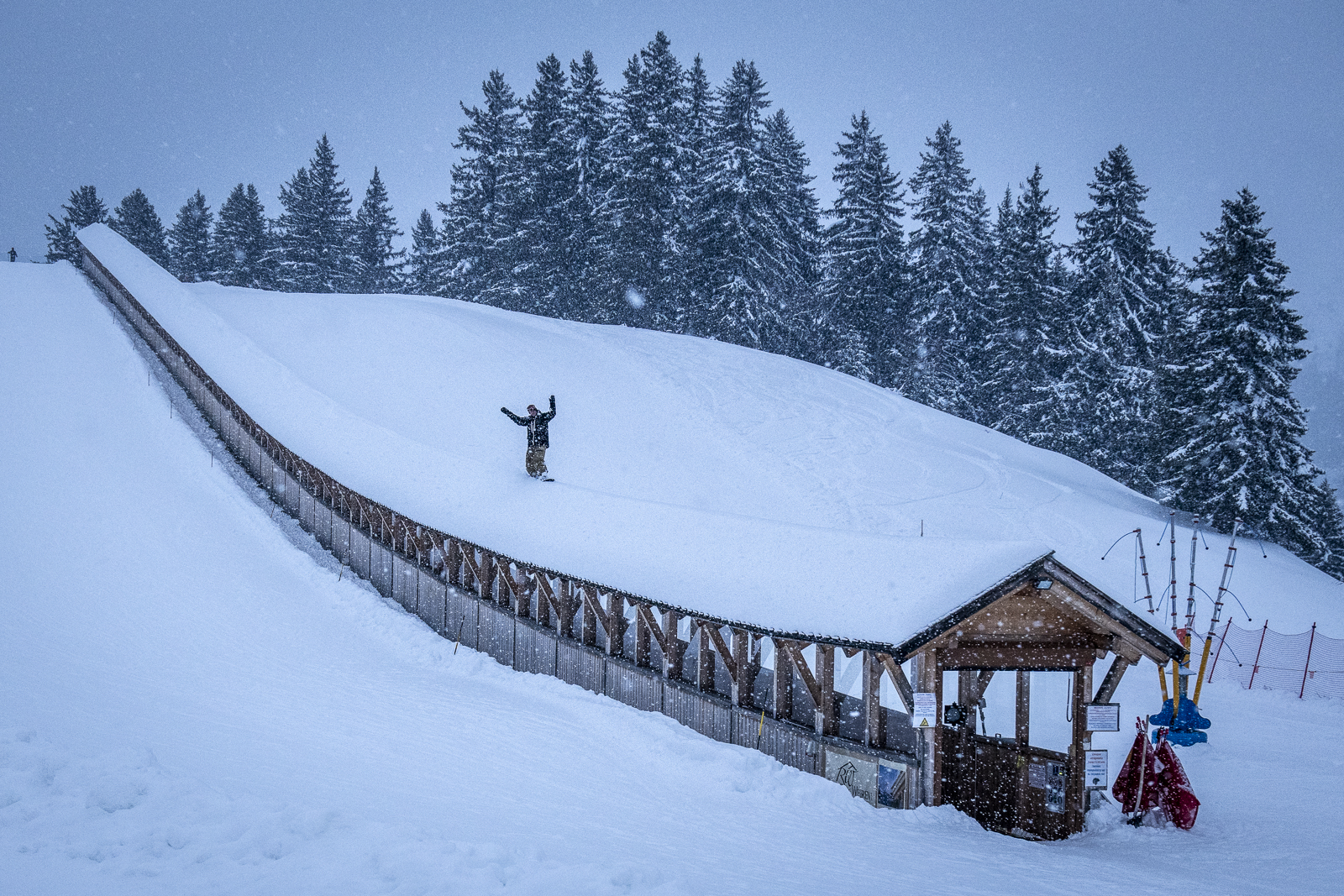 My friends Baptist and Edouard from the Chums Chalet and Le Refuge de Frience had the idea, so we imported it from Les 2 Alpes. It was quite a mission to drag it up the mountain and park in the middle of a beginners run.